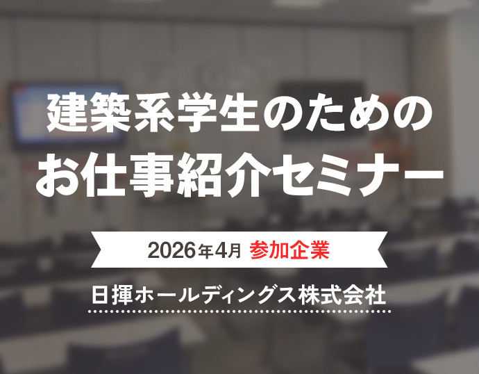 HOME > 建築業界をめざす学生へ TOP > 学生向けイベント > 建築系学生のためのお仕事紹介セミナー[11月開催 第二弾]